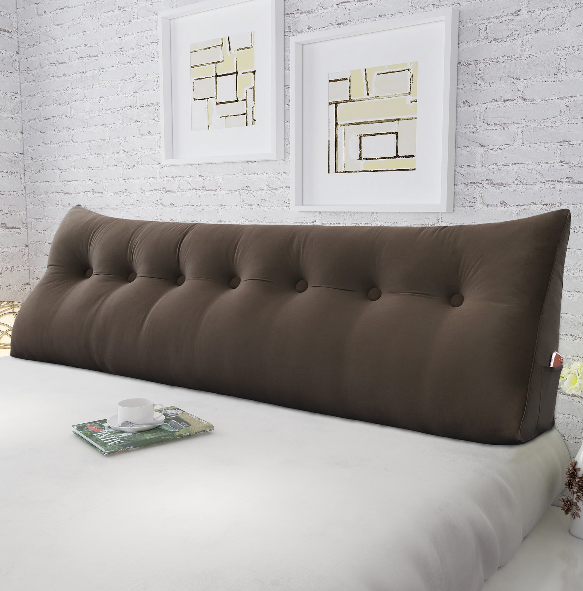 wowmax large bolster triangular positioning support reading backrest wedge pillow headboard for day bed bunk bed rv trailer with removable cover 76 inches velveteen coffee walmart com walmart com