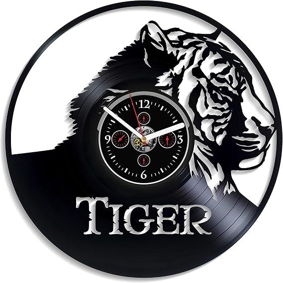 amazon com kovides tiger wall clock 12 inch animal wall clock africa wall clock vintage vinyl record retro wall clock large tiger art birthday gift tiger gift new year gift handmade clock tiger