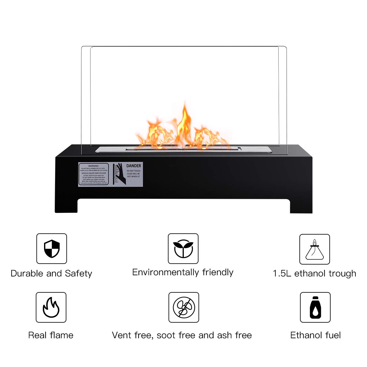 tangkula ethanol fireplace portable stainless steel indoor outdoor ventless tabletop bio ethanol fireplace transparent with base heating cooling air quality home kitchen vit edu au
