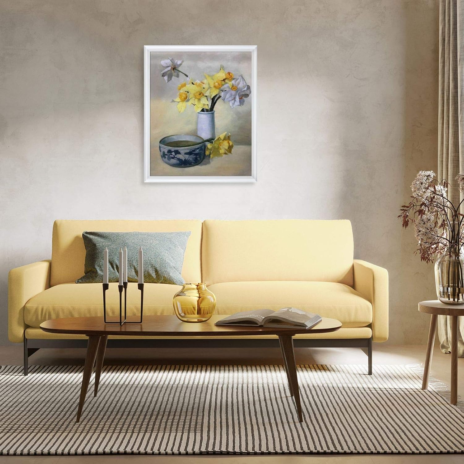 amazon com la pastiche daffodils and narcissi by frank bramley oil painting 20 x 24 moderne blanc frame wall art