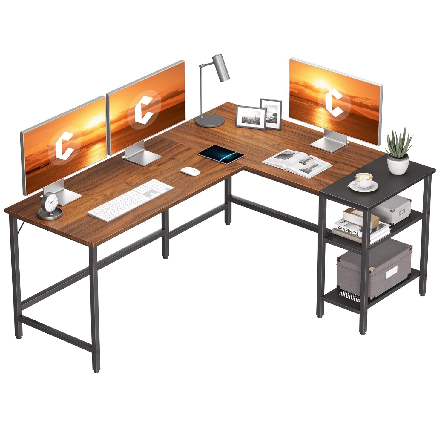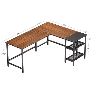 cubicubi l shaped office desk modern computer corner desk writing study table with storage shelves space saving espresso amazon in home kitchen
