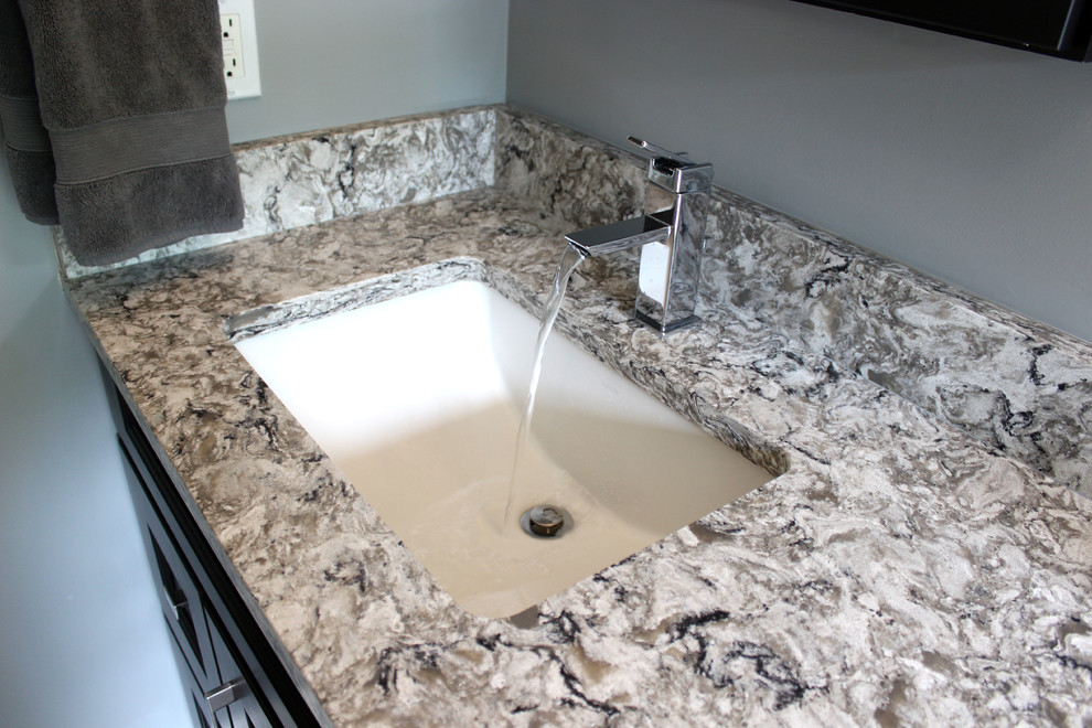 cherry onyx vanity with cambria bellingham countertops and gray tiled shower transitional bathroom cleveland by cabinet s top houzz