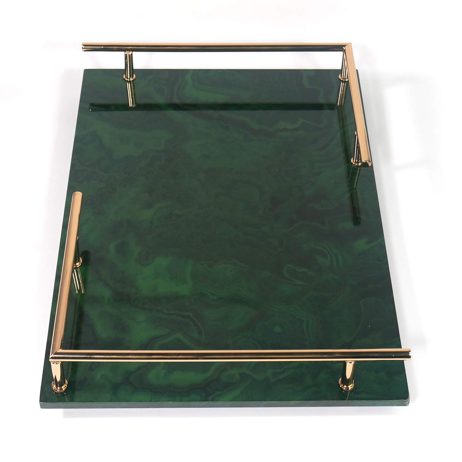 putwo decorative tray marbling tray jewellery tray with gold metal handle copper trinket tray handmade catchall tray for dresser bathroom vanity table gift for birthday christmas green home kitchen jewelry boxes