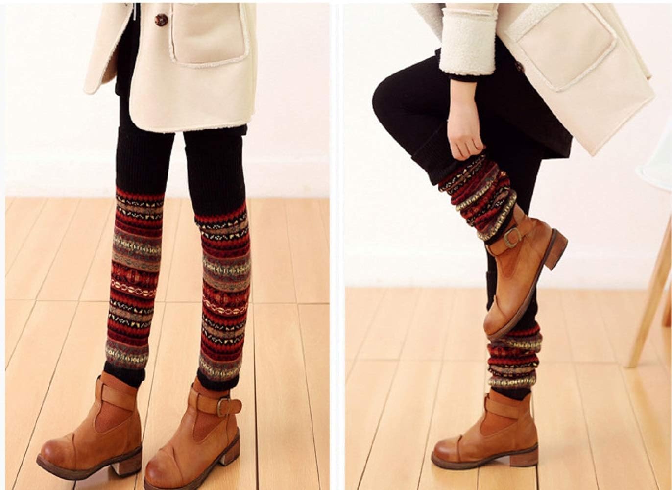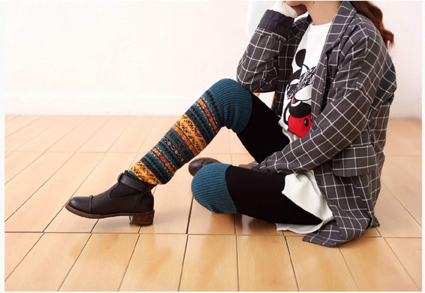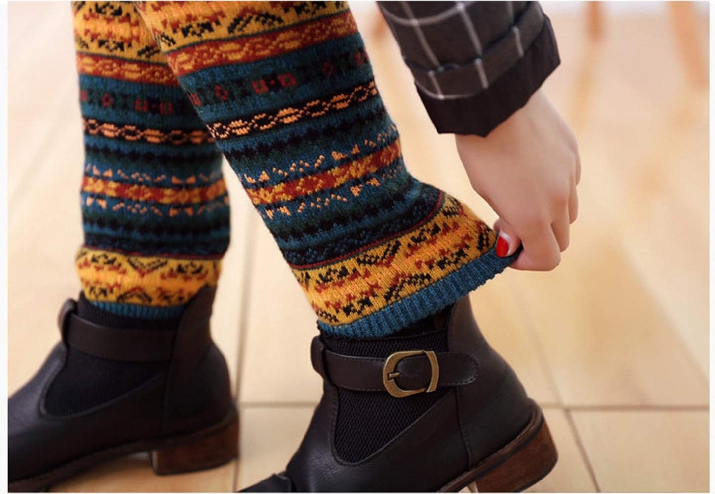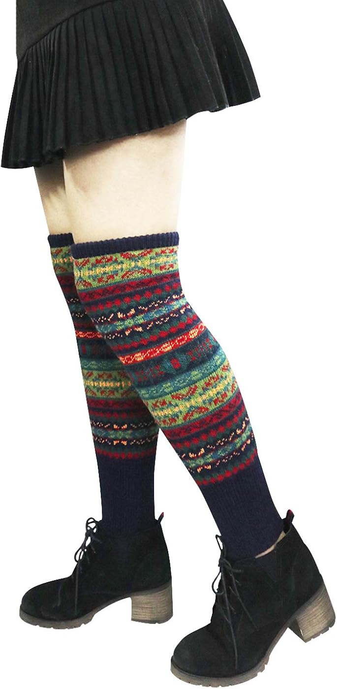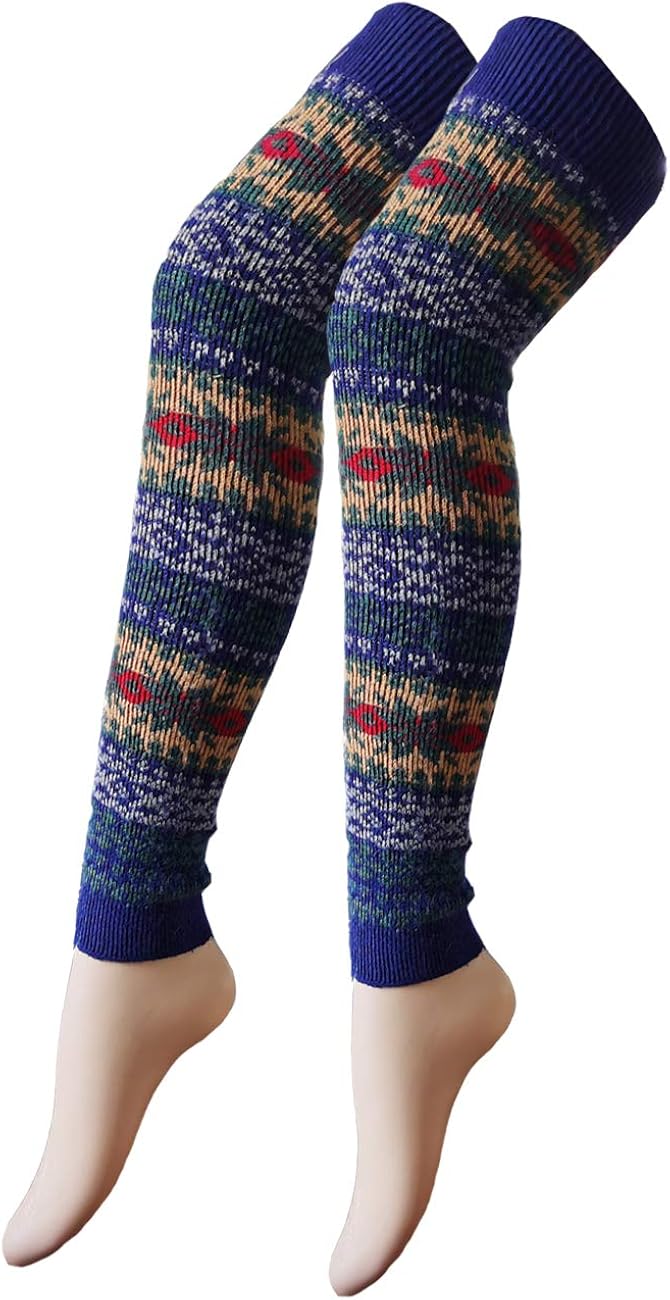 womens coloful vintage long wool leg warmer novelty thermal soft cozy boot cuffs women clothing shoes jewelry amaltheiayada gr