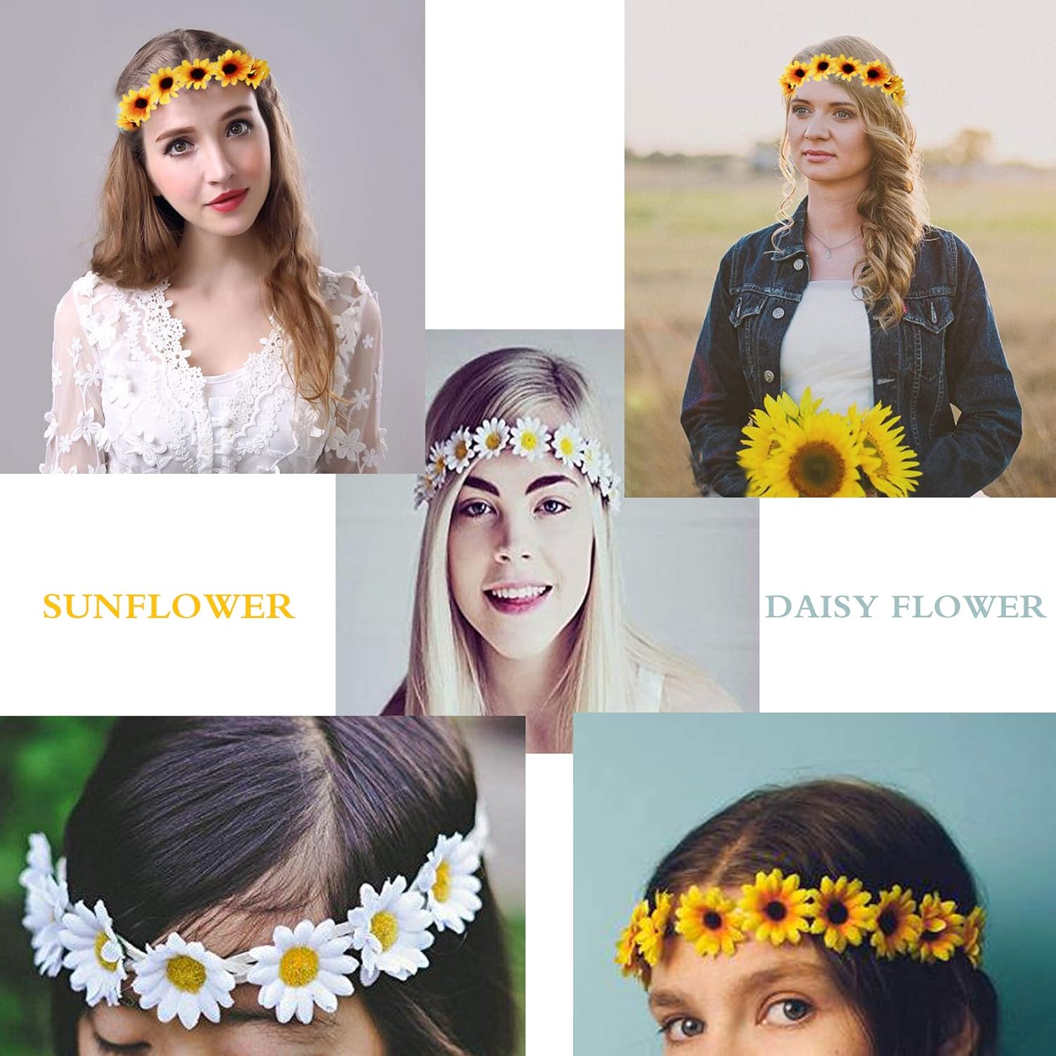 milacolato 6 12pcs handmade daisies sunflower headband boho floral wreath bridal headpiece for 60s 70s dressing hippie party festivals hair accessories clothing shoes jewelry women vit edu au