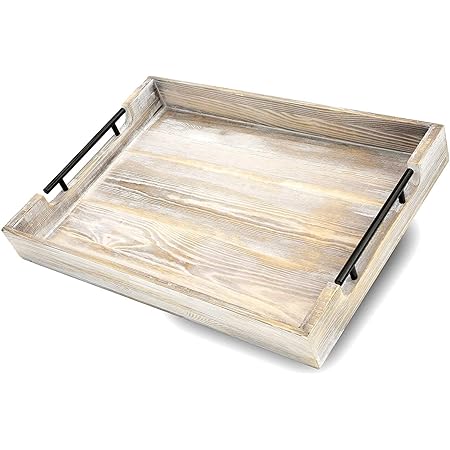 amazon com rustic wood tray with black handles serving tray coffee table tray ottoman tray decorative tray made with pine wood rustic torched tray for home decor