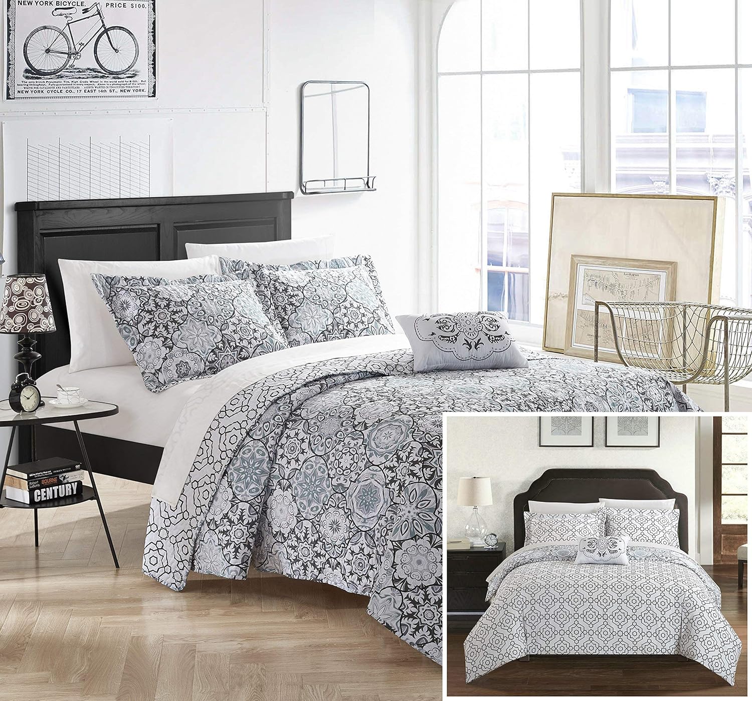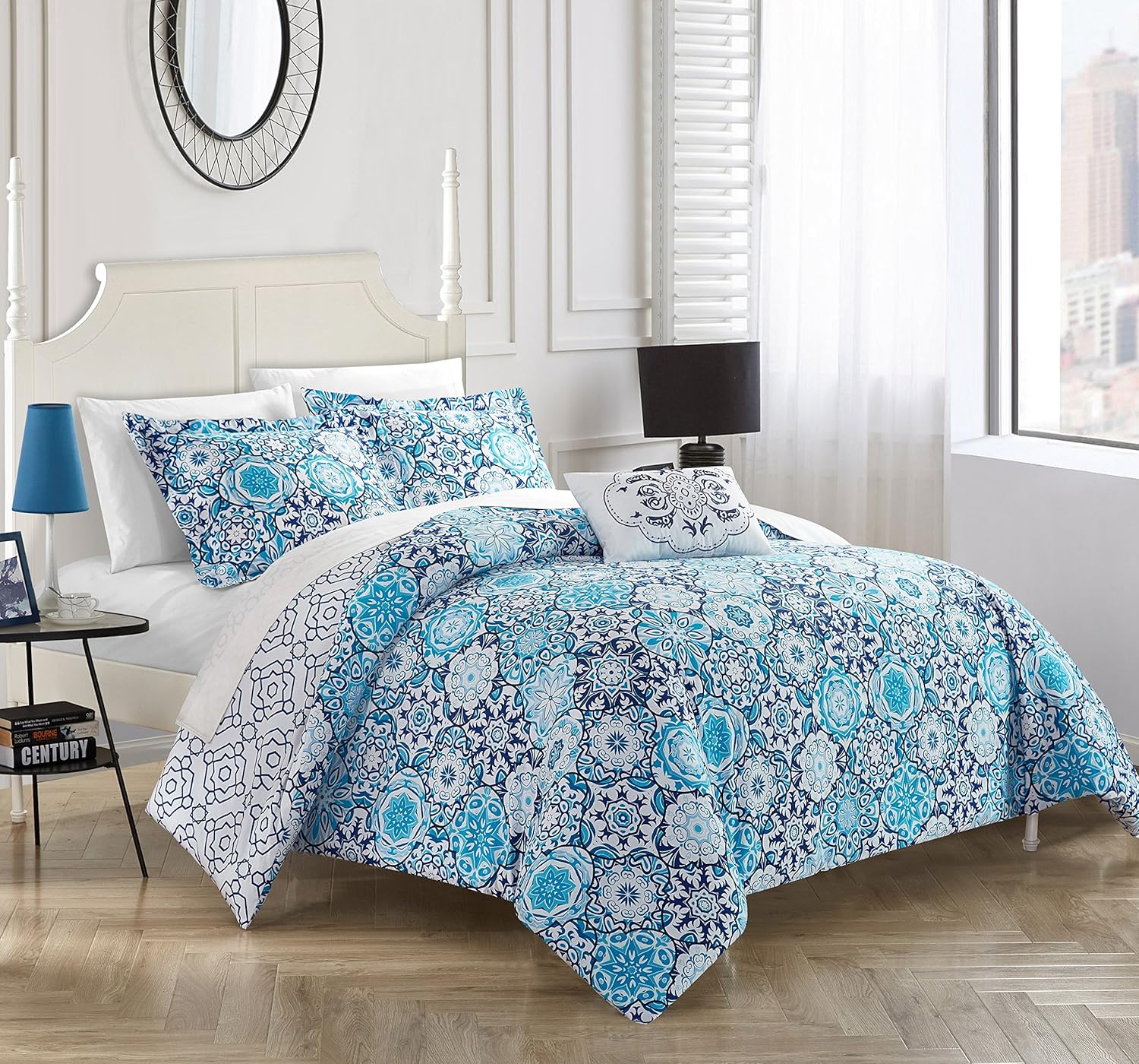 blue ds5187 an chic home bristol 4 piece reversible duvet cover set 100 cotton bohemian inspired contemporary geometric print zipper closure bedding queen bedding home kitchen kalingauniversity ac in