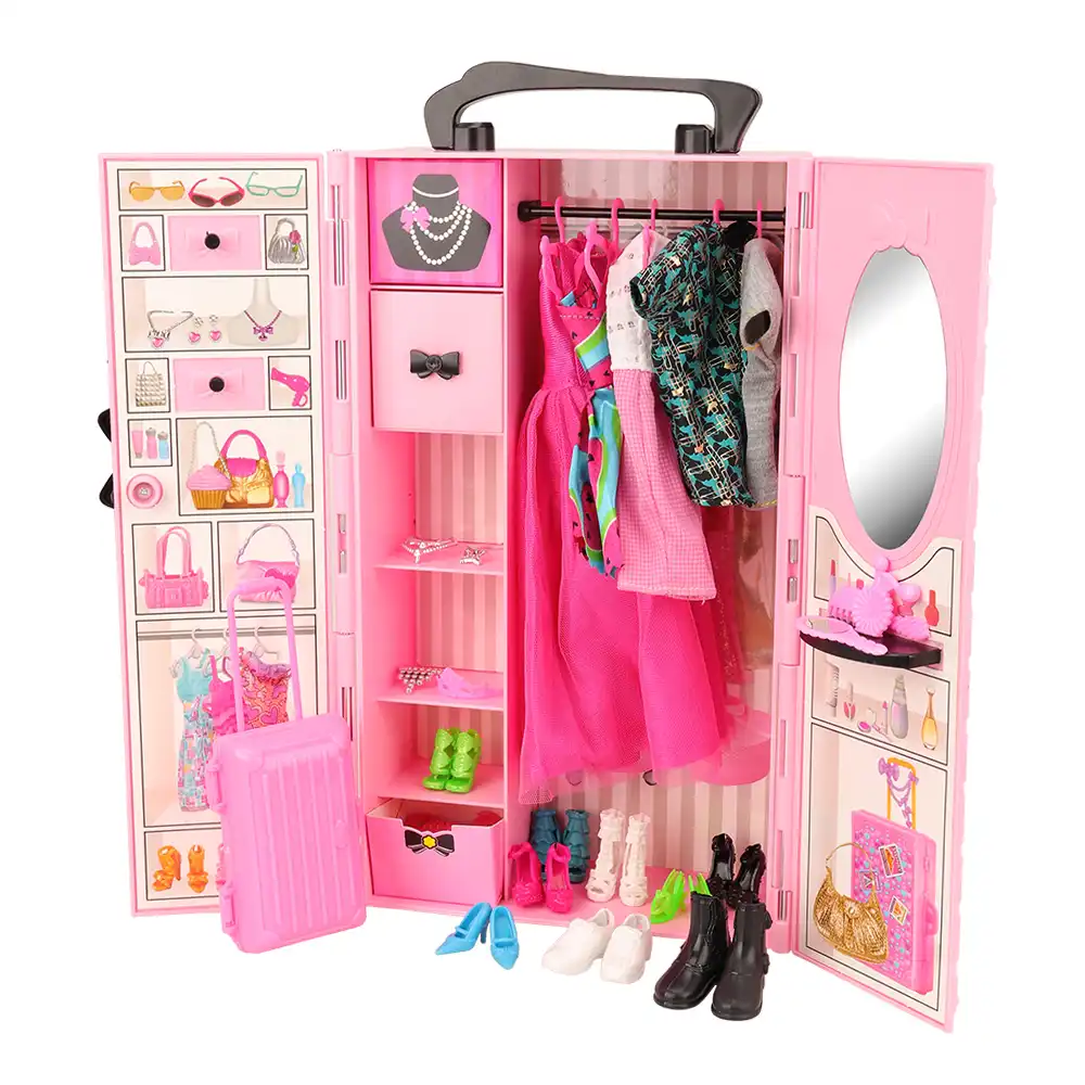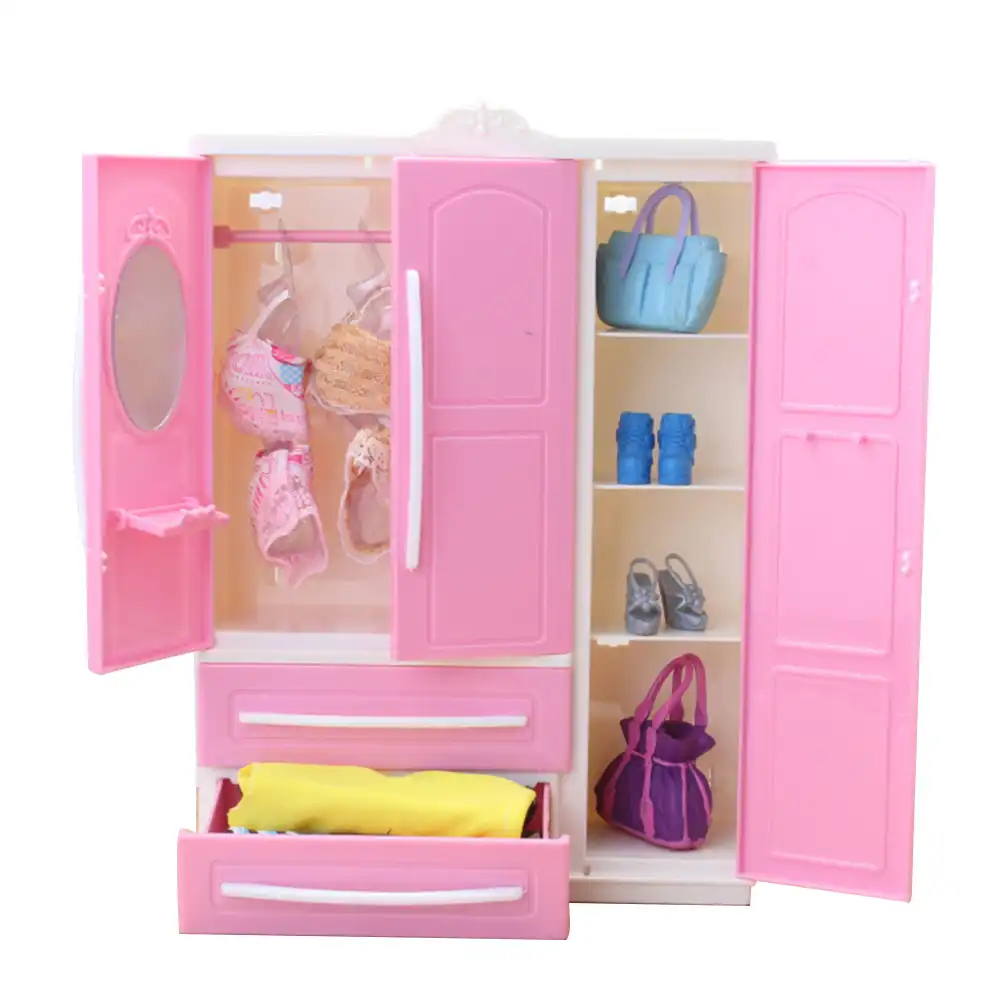 1x pink cute doll wardrobe 10x mix hangers mini closet princess dollhouse furniture accessories for barbie doll girl s toys dolls accessories aliexpress