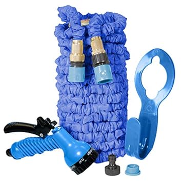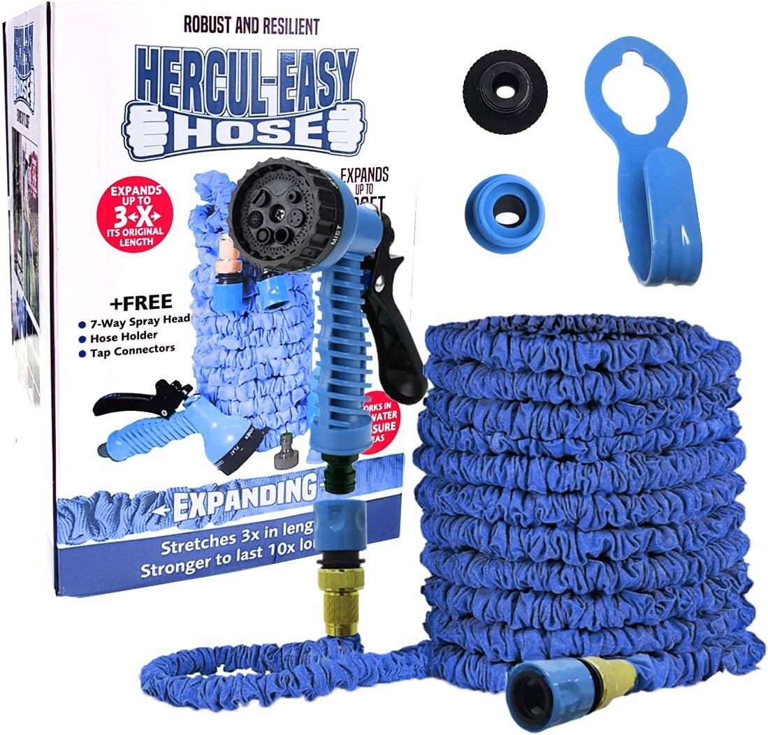expands to 75ft in blue easylife lifestyle solutions hose holder and tap connectors burst proof and tangle free 7 way spray gun hercul easy lightweight expanding garden hose watering equipment garden outdoors