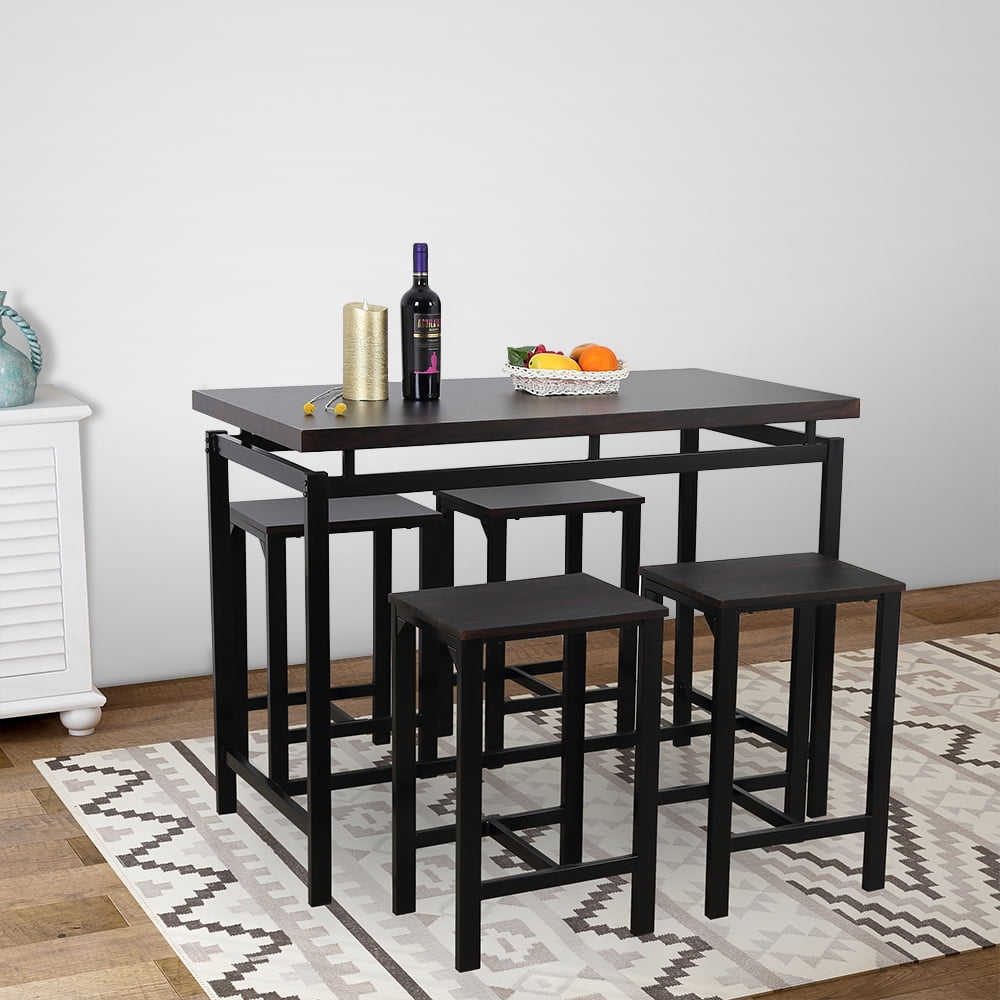 seventh 5pc counter height table set minimalist dining table set kitchen table and chairs for 4 modern style wood tabletop metal legs dining room table and chair set for home kitchen q056