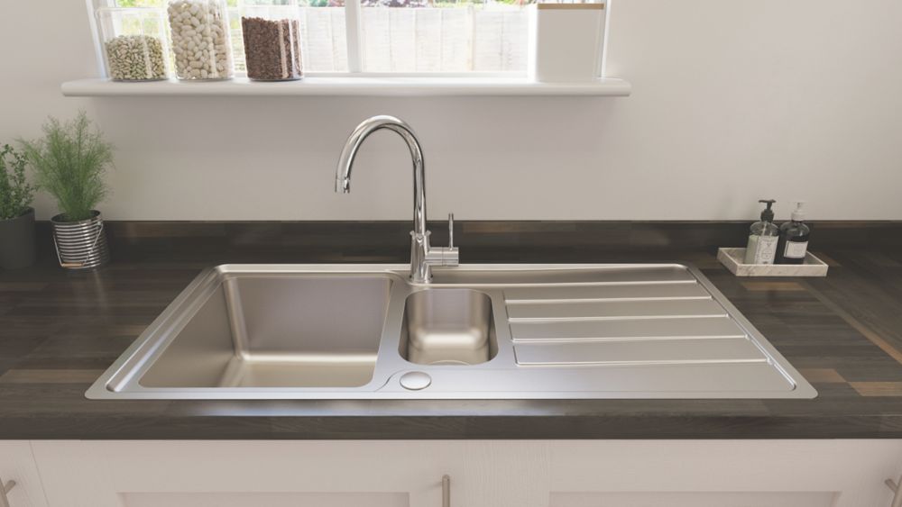 bristan index kitchen sink reversible drainer stainless steel 1 5 bowl 970 x 500mm sinks screwfix com