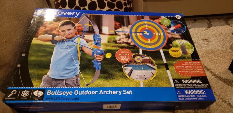 discovery bullseye outdoor archery set with led target light up toy night day activity includes 4 arrows quiver with strap 1 bow for ages 6 and older walmart com walmart com