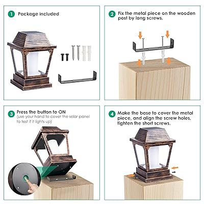 denicmic solar post lights 2 pack solar post cap lights outdoor waterproof metal warm white led lighting 25 lumen for 3 5x3 5 4x4 5x5 wooden fence posts deck rail yard patio garden black