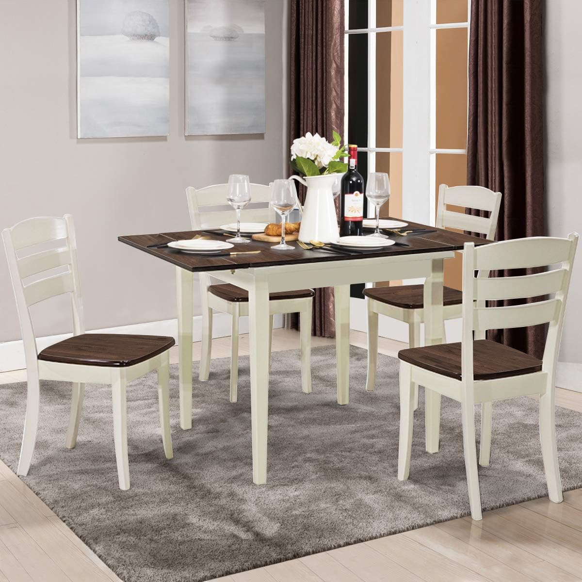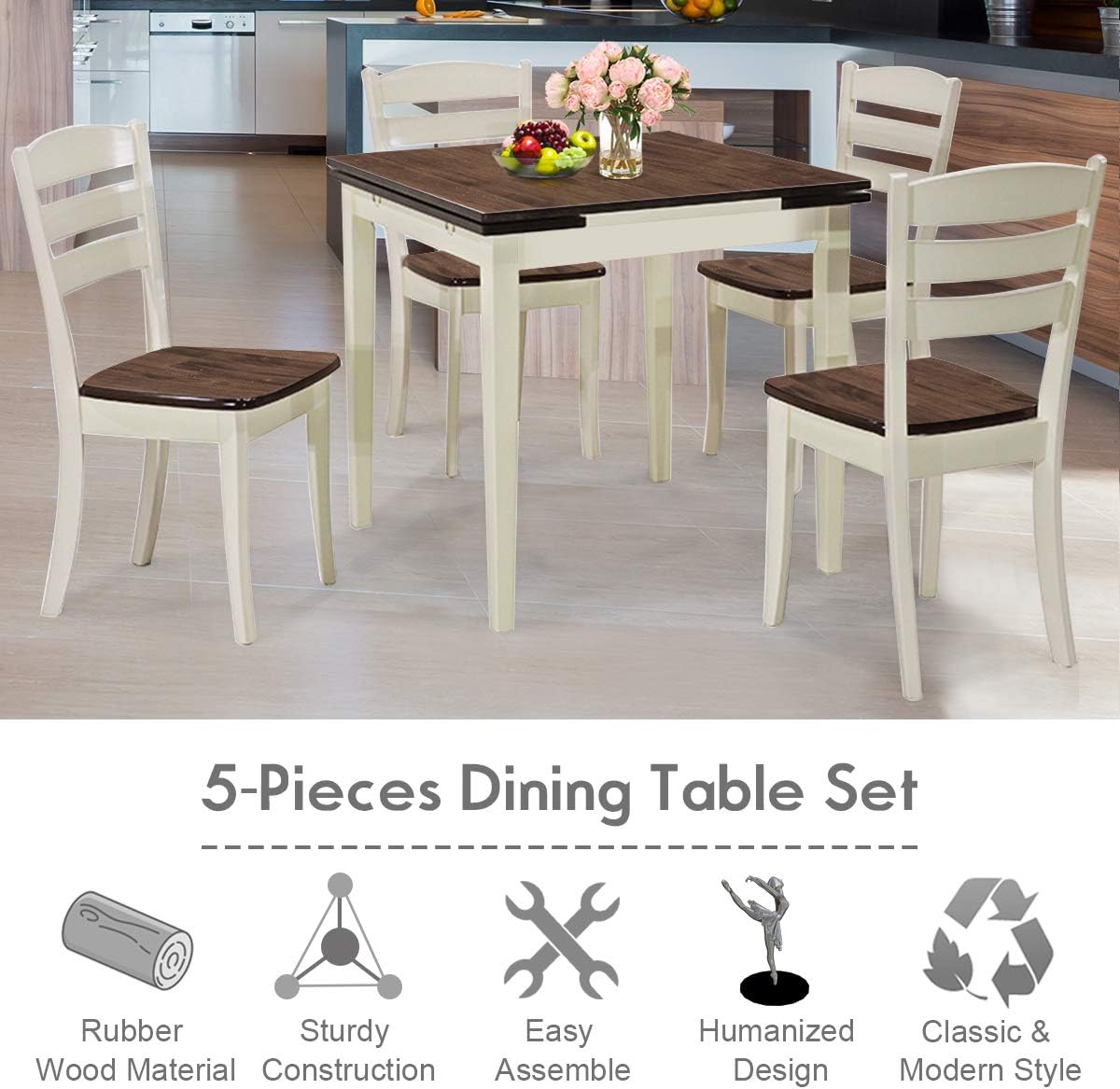 wood kitchen table set with 4 chairs modern home furniture for family walnut milky white folding and extendable tabletop giantex 5 pcs dining table set table chair sets home