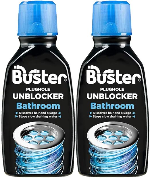 buster bathroom drain clear plughole unblocker 300ml dissolves hair soap 2 bottles amazon co uk grocery