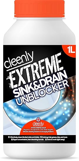 cleenly extreme sink drain cleaner unblocker liquid 1 litre heavy duty formula for bathroom kitchen drains and more amazon co uk grocery