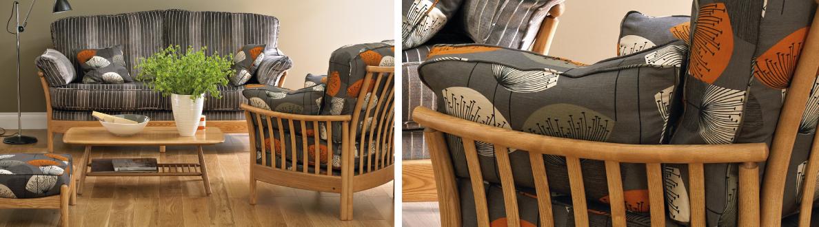 this refurbished blonde ercol windsor 2 seater sofa is newly upholstered in lovely french ticking ercol furniture ercol sofa
