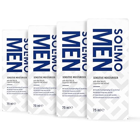 amazon brand solimo men sensitive face moisturiser with aloe vera vitamine e and liquorice root extract 4x75ml amazon co uk beauty