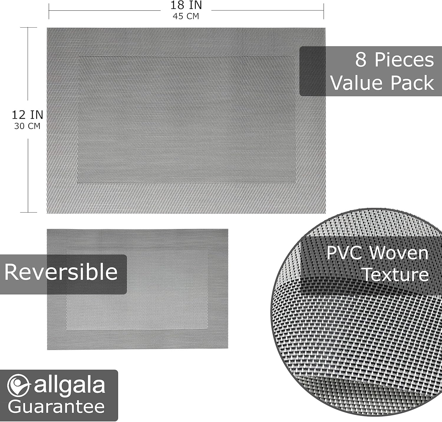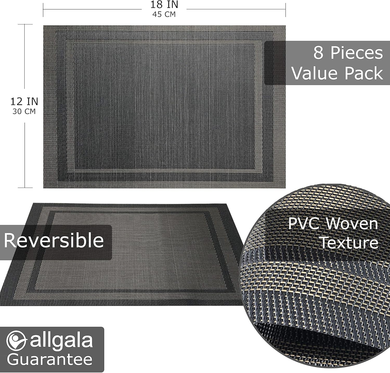 allgala 8 pack dining table pvc placemat set protect table from heat stain scratch and anti skid style black gold frames hd80207 ca home kitchen table linens cristap pl