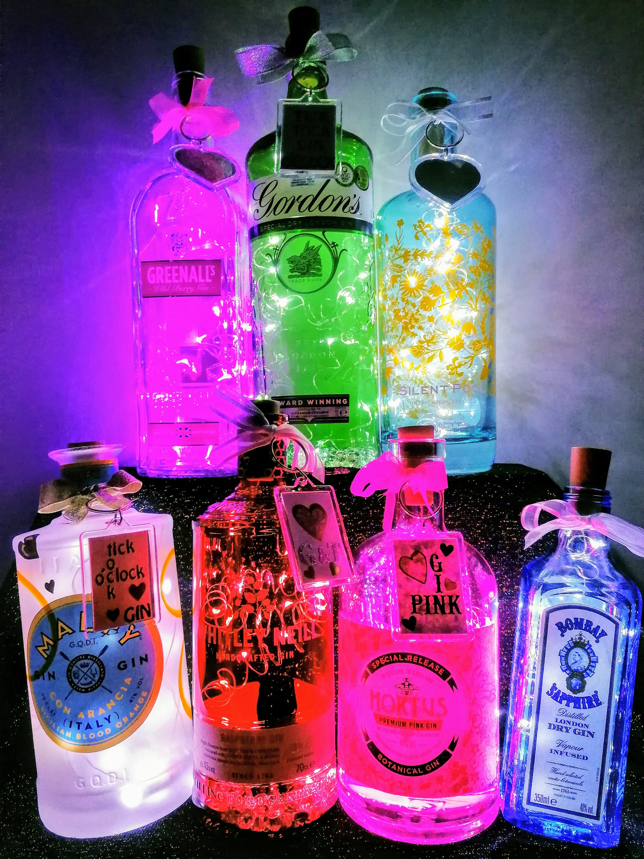 j j whitley violet gin with pink led lights and 3 spare etsy in 2020 pink led lights violet gin led lights