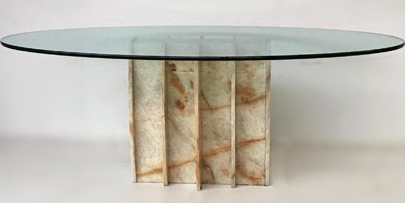7 pieces outdoor dining set with oval marble top table and rattan woven armchair in 2021 outdoor dining set oval table dining marble table top