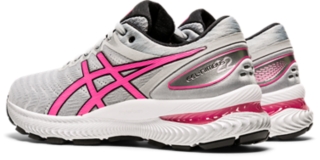 women s gel nimbus 22 piedmont grey hot pink running shoes asics
