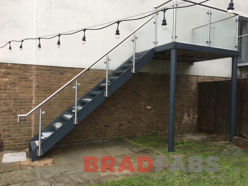 steel fabricators of balconies staircases external steel staircase allowing access to the side of the property finished off with timber decking fabricated and delivered throughtout the uk
