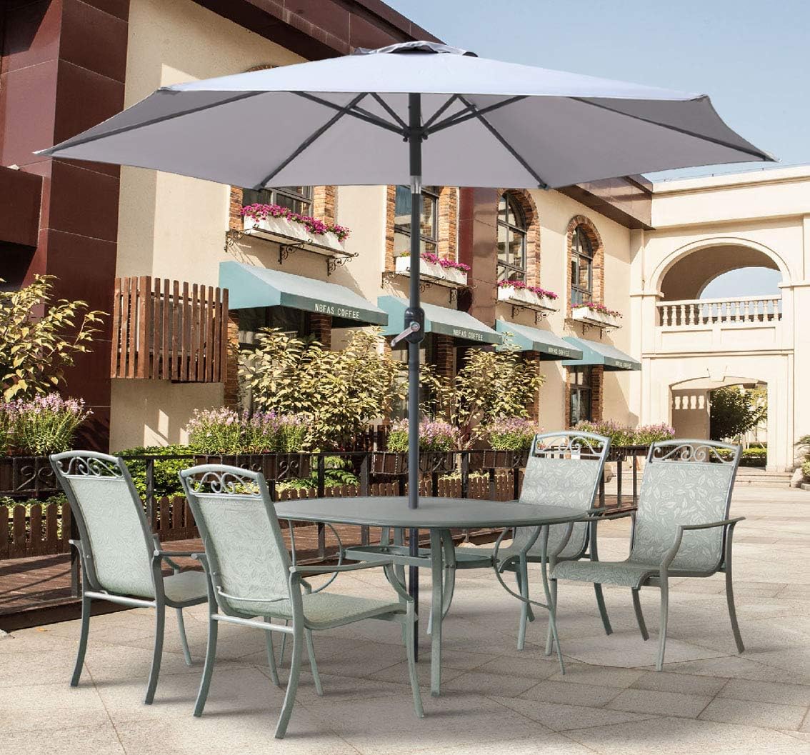 greenbay 2 5m round garden parasol umbrella outdoor sun shade for patio beach pool umbrellas with winding crank and 38mm tilt pole grey amazon co uk garden outdoors