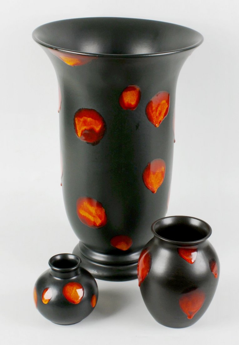 poole pottery vase england matte black red orange cosmic drip glaze galaxy 1989360279