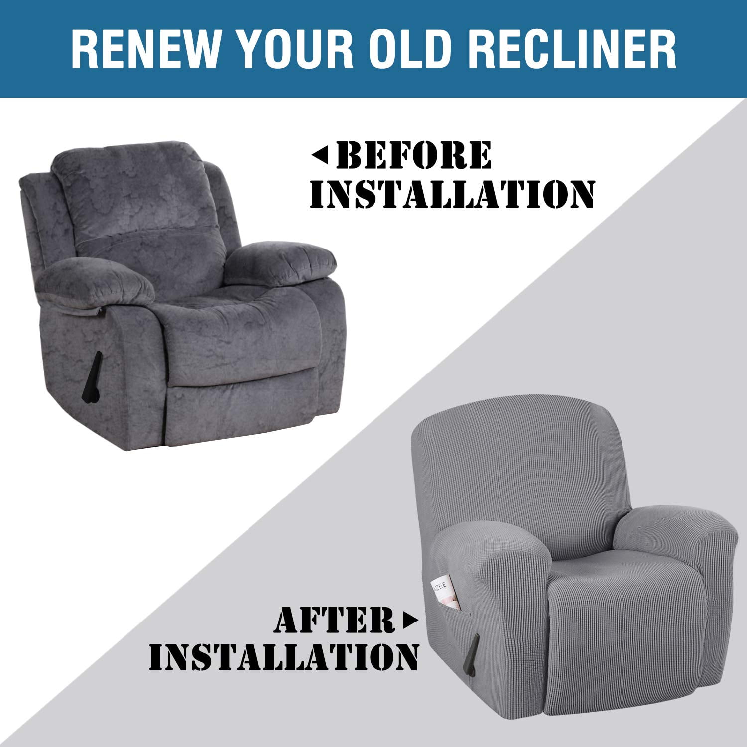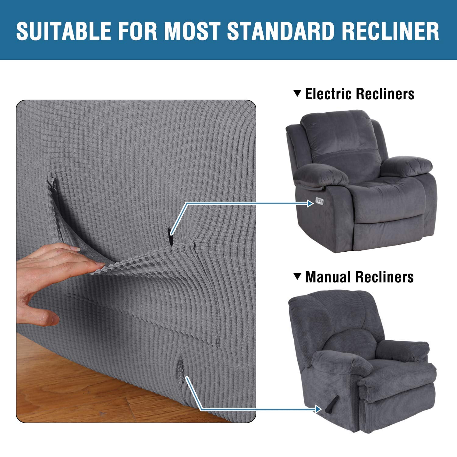 h versailtex 1 piece jacquard spandex recliner stretch slipcover charcoal gray walmart com walmart com