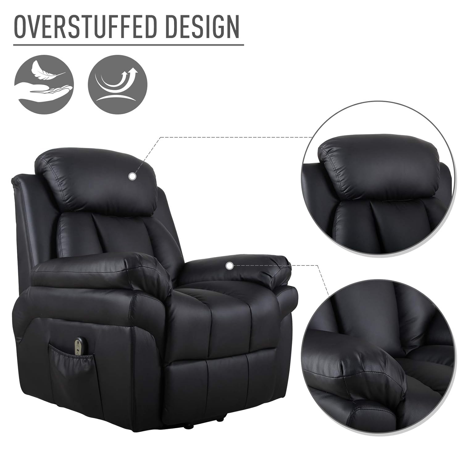 homcom lift stand assistance chair recliner sofa pu leather extra padded design electric power w remote black living room furniture furniture cate org