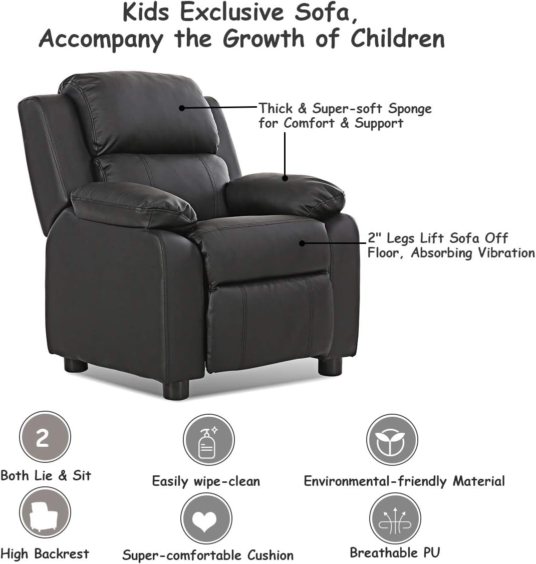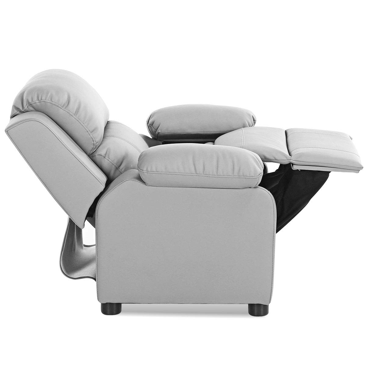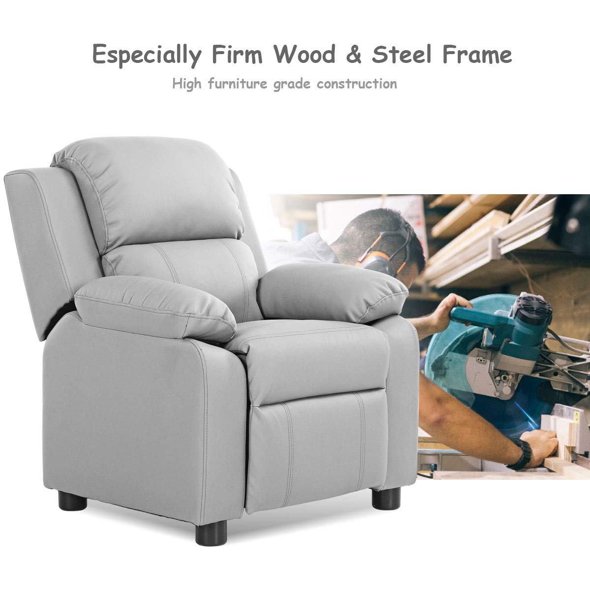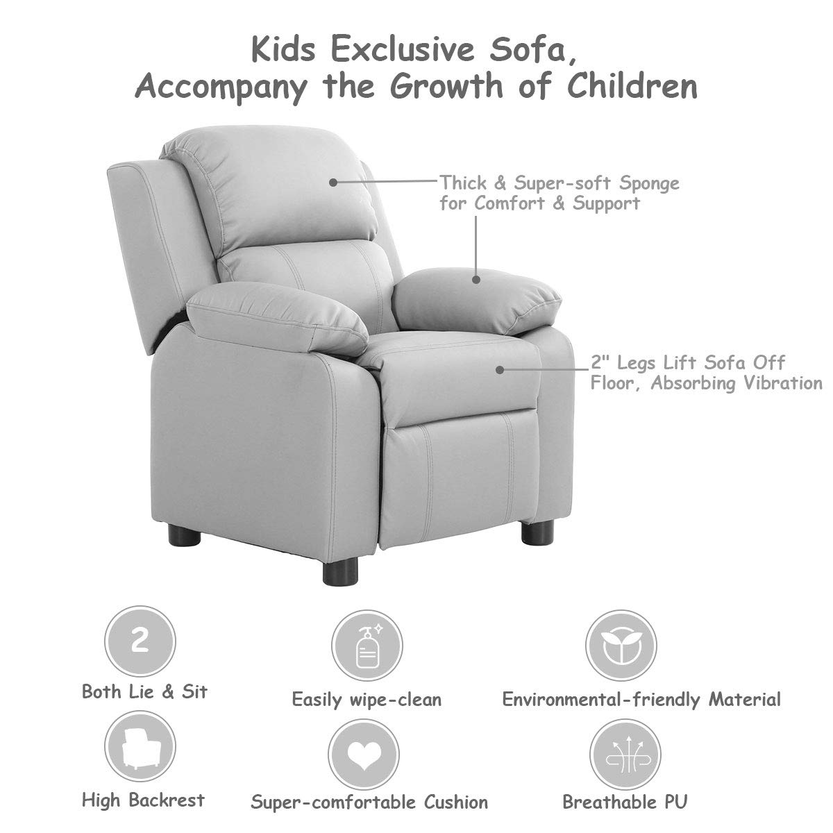 honey joy kids recliner sofa gray pu leather armchair with footrest storage arms thicken padded children sofa chair for boys and girls home kitchen recliners svanimal com