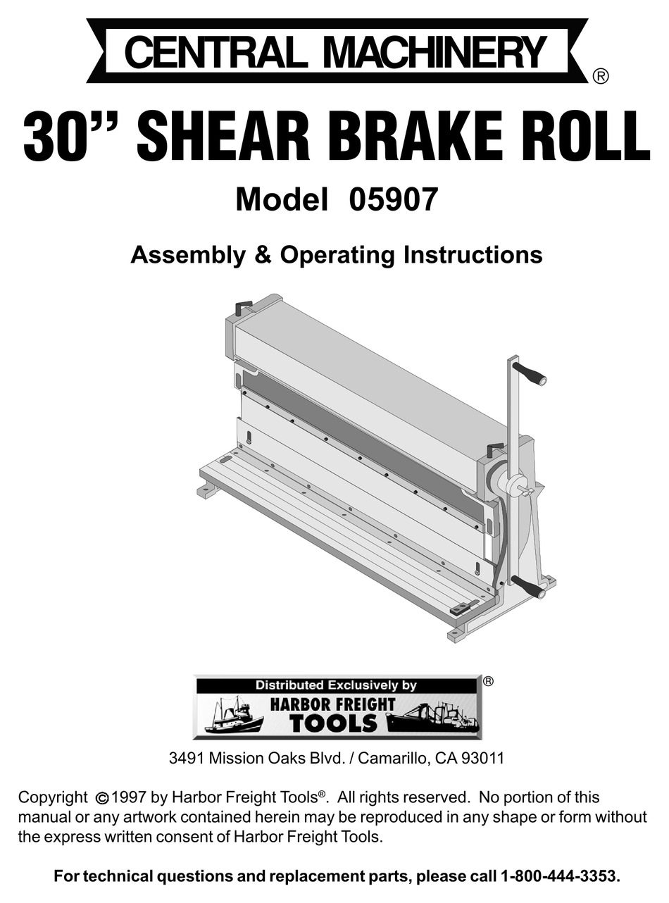 central machinery 05907 assembly operating instructions pdf download manualslib