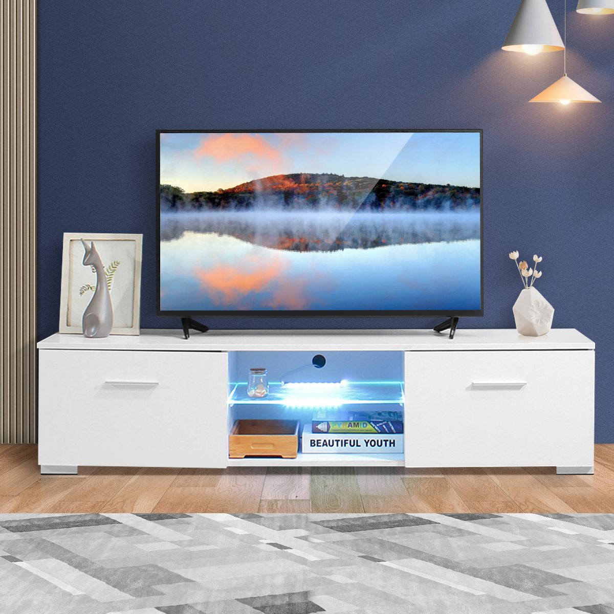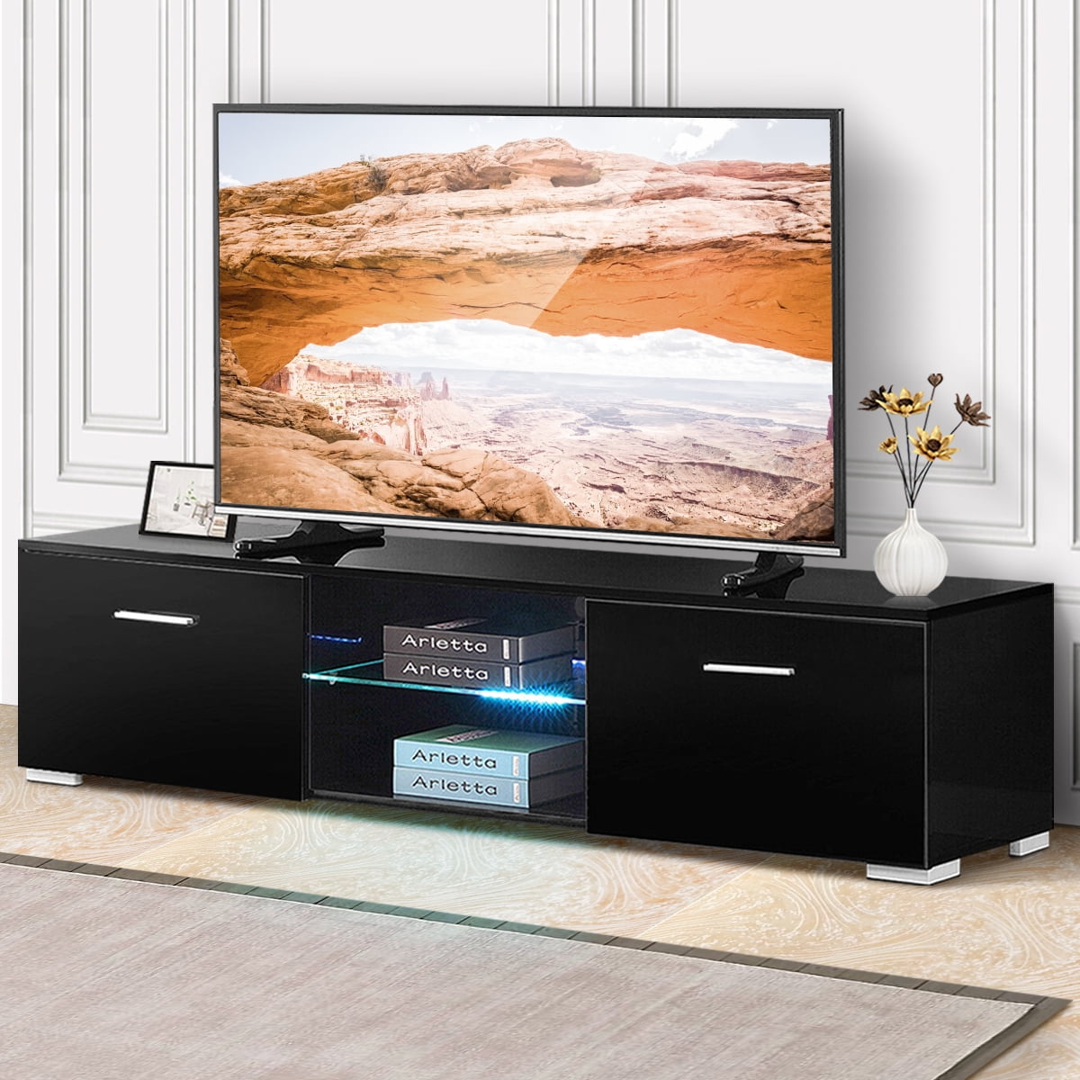 57 tv stand led media center w 2 open shelves 2 drawers high gloss tv unit for tvs up to 65 walmart com walmart com