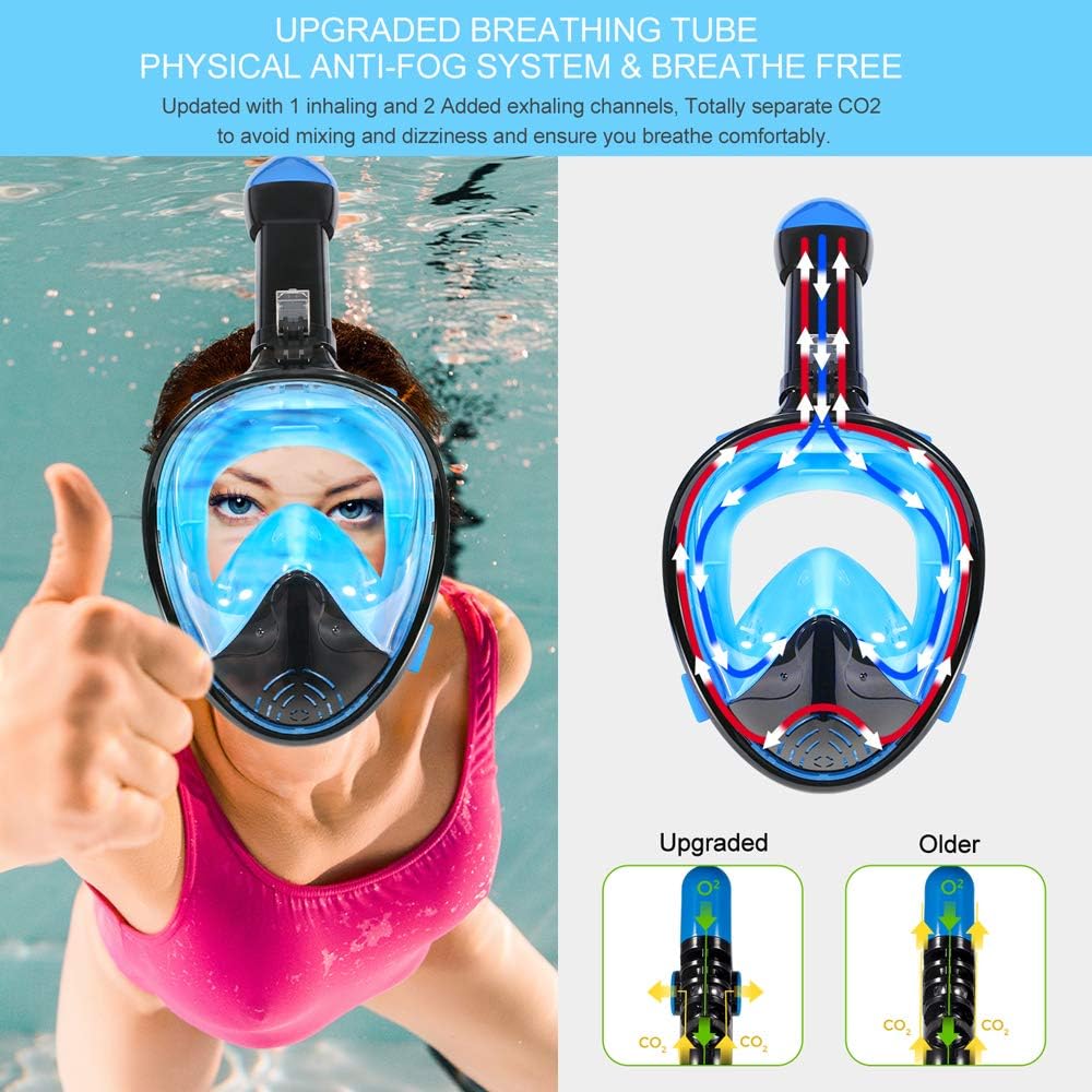 strenter full face snorkel mask foldable panoramic view snorkeling mask with detachable camera mount dive mask with newest safety breathing system anti fog anti leak snorkel set diving packages sports outdoors svanimal com