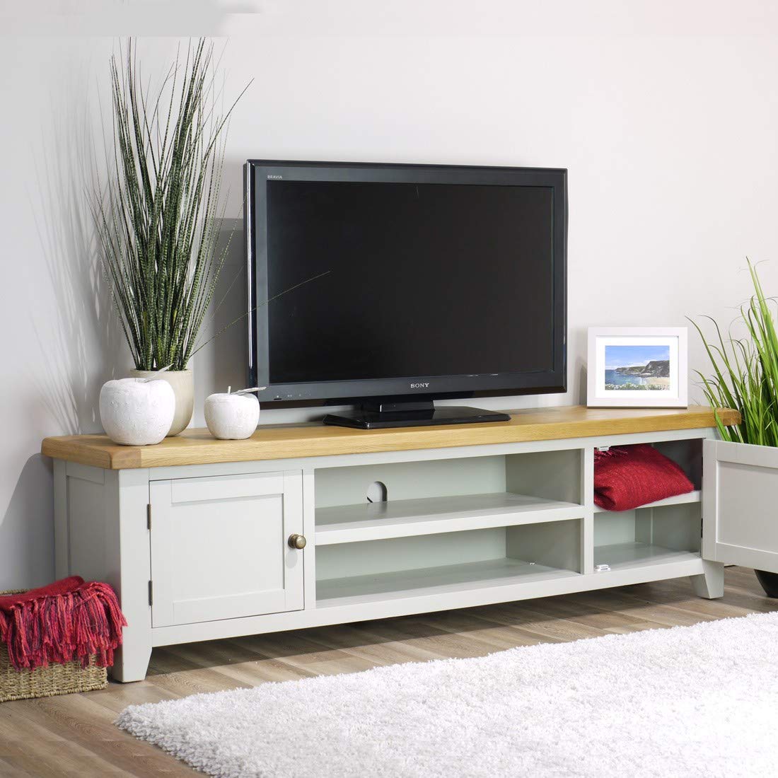 180cm unit fully assembled arklow painted grey oak extra large tv stand for 65 inch tv home kitchen home entertainment furniture
