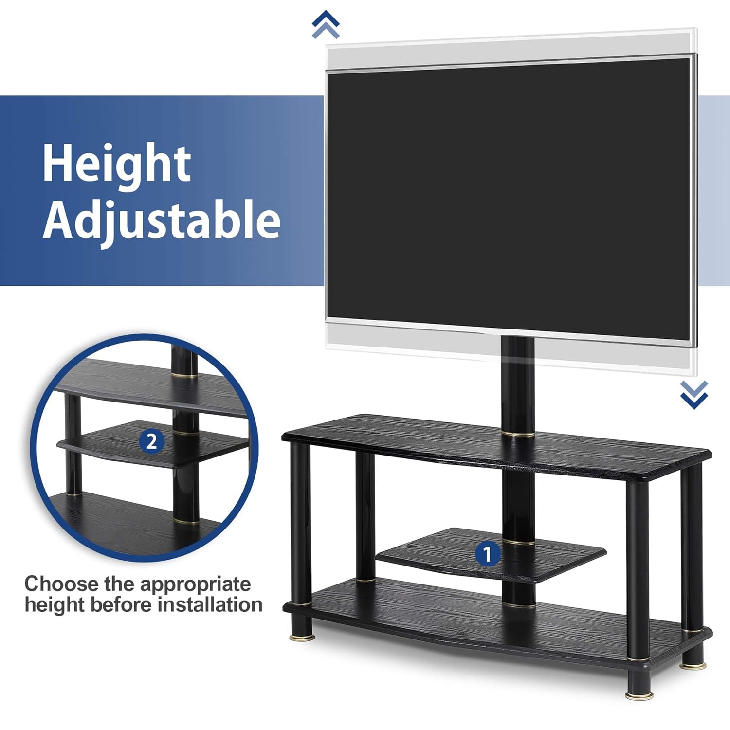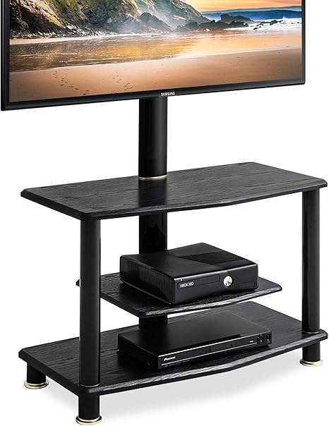 fitueyes floor tv stand with swivel mount and height adjustable bracket for 32 to 65 inch plasma flat or curved screen tvs wooden black furniture home cristap pl