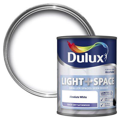 dulux light space absolute white satin metal wood paint 0 75l diy at b q