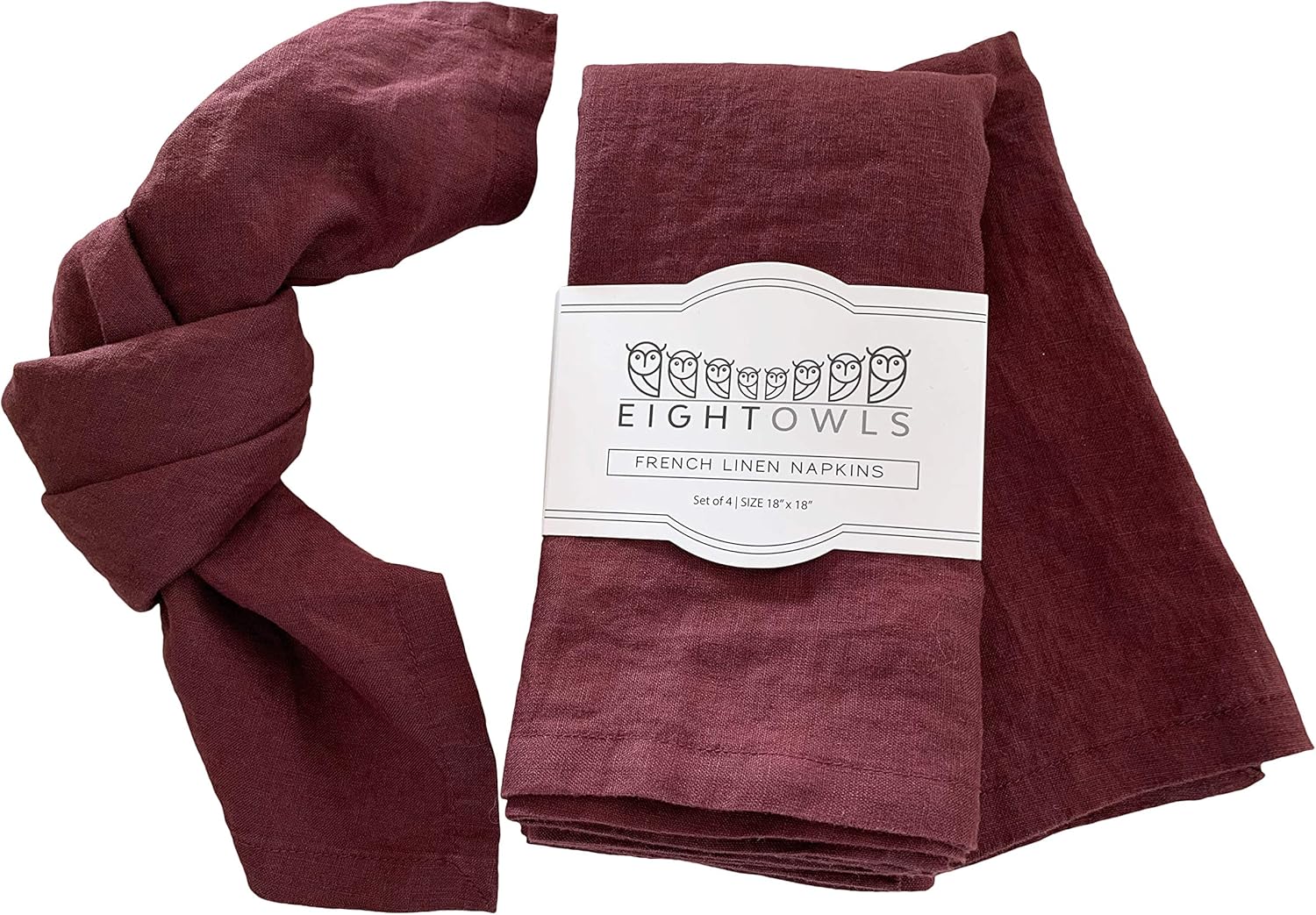 amazon com eight owls linen napkins 100 french flax stonewashed pure linen cloth napkins size 18 inch x 18 inch set of 4 plum burgundy home kitchen