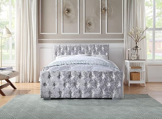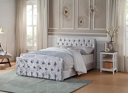 home treats crushed velvet bed frame single bed embossed with diamante jewels plush upholstered finish 3ft no mattress single amazon co uk home kitchen