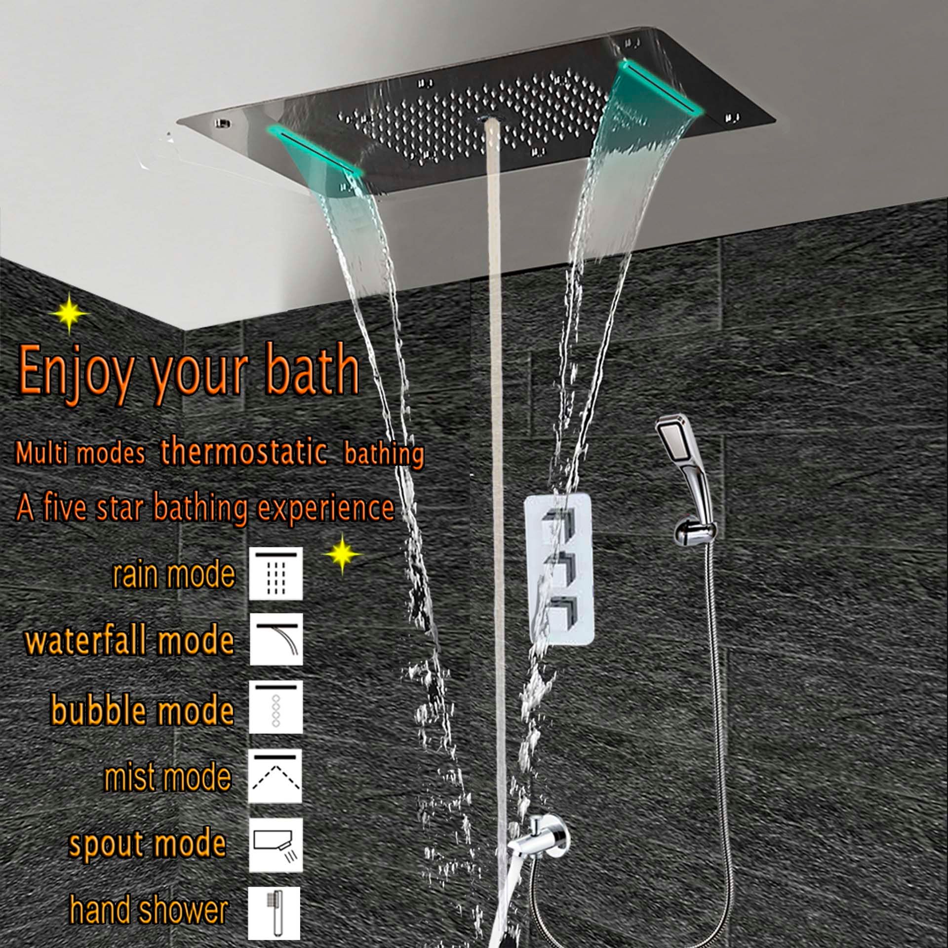 2021 luxury bathroom led ceiling shower head accessories sus304 700x380mm functions rain waterfall mist bubble shower df5422 from cncoming 420 1 dhgate com