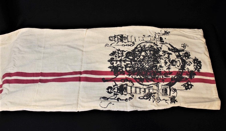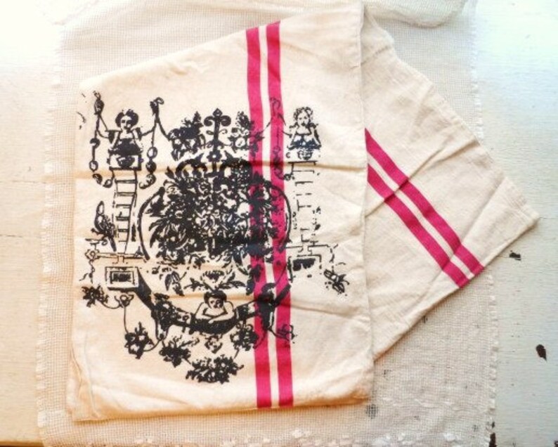 linen table runner cherubs women artsy accent table scarf natural linen red stripes stamped design buffet vanity valance orphaned treasure table linens home living vadel com